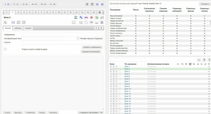Ad Inserter Pro — это мощный и в тоже время простой, универсальный плагин для управления рекламой на сайте WordPress, плагин AdSense, плагин Менеджера рекламы, инструмент для вставки пользовательского кода в шапке и подвале сайта и многое другое. Он может вставлять любой код в любую поддерживаемую позицию. Идеально подходит для рекламы AdSense, Amazon, Ad Manager DFP, вращающихся баннеров или любой другой рекламы .