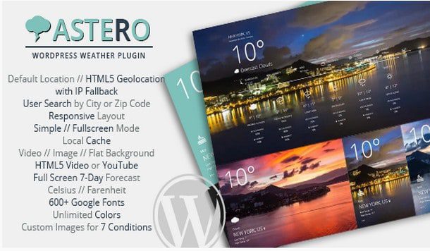 С плагином погоды Astero вы сможете создавать потрясающие погодные виджеты с анимированными фонами, пользовательскими изображениями или чистым и минималистичным видом с помощью создателя коротких кодов. Сценарии и стили загружаются условно, чтобы минимизировать HTTP-запросы, а кэширование Html5 позволяет увеличить скорость загрузки и избежать ограничений API-вызовов. Используйте в качестве виджета, короткого кода или и того, и другого!