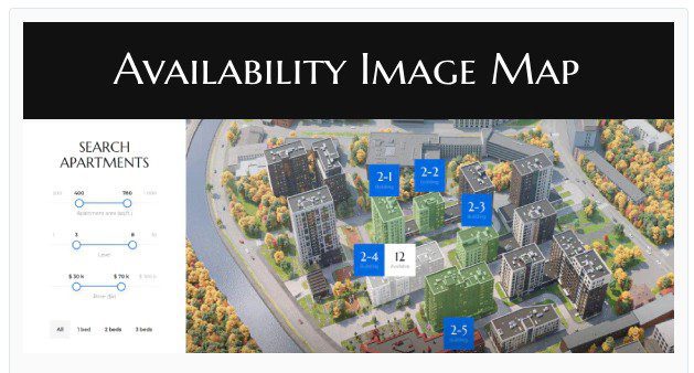 Этот плагин Image Map WordPress можно использовать для презентации с картой доступности (продажа или аренда):