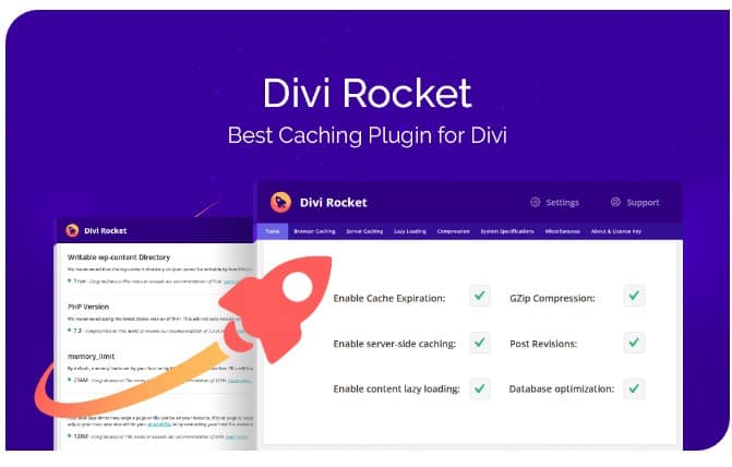 Самый мощный плагин для кэширования, специально разработанный для темы Divi. Divi Rocket был создан с нуля и настроен специально для ускорения работы темы Divi и имеет ряд функций, недоступных ни в одном другом плагине кэширования на рынке. Поскольку Divi Rocket был создан специально для Divi, мы оптимизировали пользовательский интерфейс, чтобы он был таким же простым в использовании и интуитивно понятным, как и сама тема Divi.