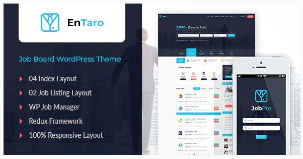 Entaro — тема WordPress для портала вакансий разработана для сайтов с вакансиями или крупных сайтов, требующих доски объявлений. Это тема каталога заданий, основанная на содержании. Он позволяет вам управлять типами, категориями и списками вакансий из знакомого пользовательского интерфейса WordPress. Entaro поставляется с полной интеграцией «WP Job Manager» для управления функциями каталога заданий.