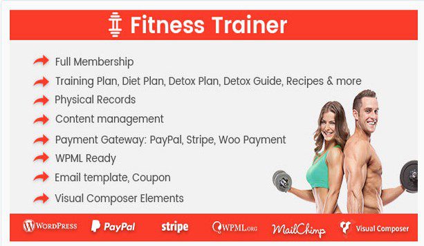Fitness Trainer — Тренер по фитнесу. Запись на членство в фитнес клуб, обучение. Плагин имеет подключение к woocommerce, возможность оплаты за членство через шлюзы woocommerce.