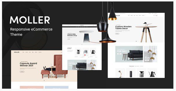 Moller — это отзывчивая, кроссбраузерная тема для мебели WooCommerce WordPress. 4 макета домашней страницы с простым и приятным расположением.
