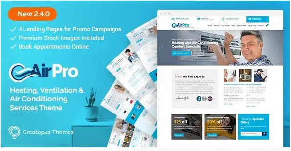 AirPro — тема WordPress для систем отопления и кондиционирования воздуха для сервисного обслуживания.