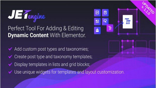 JetEngine позволяет создавать пользовательские типы постов, пользовательскую таксономию, добавлять встроенные в элементы шаблоны для пользовательского типа POST или терминов таксономии.