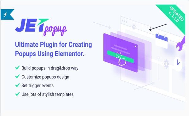 JetPopup — это плагин для Elementor, позволяющий создавать шаблоны всплывающих окон на разные темы и устанавливать для них универсальные условия входа, прикреплять шаблоны к конкретным виджетам и отображать их на определенных страницах. С помощью JetPoup вы получаете десятки всплывающих предустановок, а также предустановки макета окна и огромную функциональность для изменения стиля всплывающих окон и их поведения.