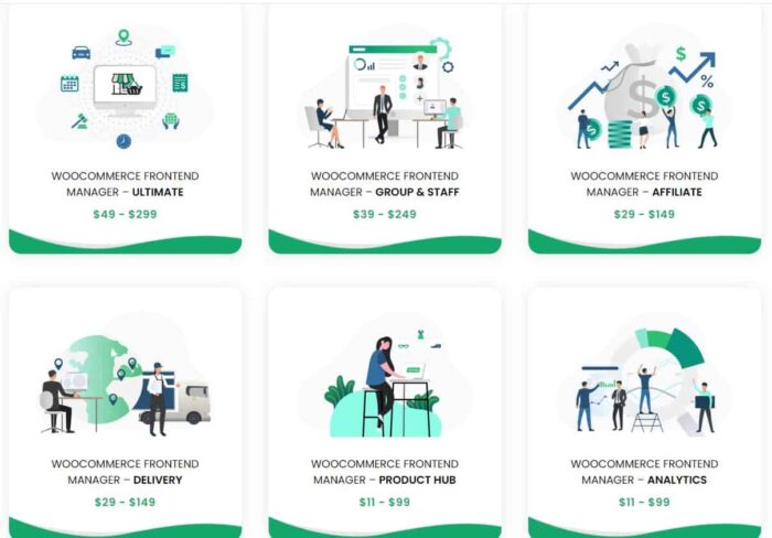 - WooCommerce Frontend Manager — Ultimate — платный, стоит кучу денег.