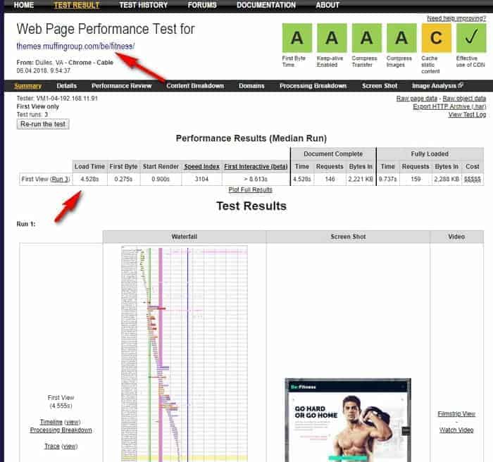 Решил проверить и попробовать увеличить скорость. Для начала проверил скорость загрузки сайта ДЕМО разработчиков самой темы BeTheme, выбрал шаблон FITNESS, проверял на агрегаторе: