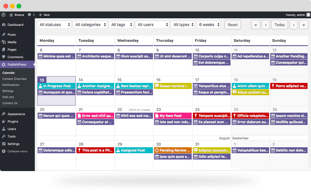 Используя Календарь PublishPress, вы можете легко увидеть, когда контент планируется и когда он был опубликован.