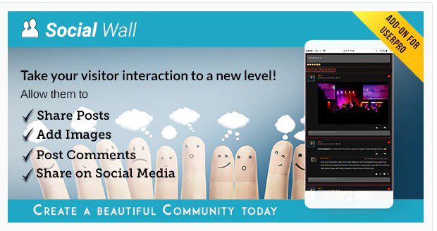 Да, UserPro может быть намного интереснее! Представление Социальной Стены — обновления способ взаимодействовать с полным сообществом! С Социальной Стеной можно добавить стену на своем сайте и помочь всем участникам взаимодействовать с друг другом. С Социальной Стеной Ваши пользователи могут — общаться и делиться друг с другом — Поделится Изображениями — Комментировать сообщения друг друга.