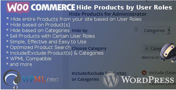 WooCommerce скрыть продукты в зависимости от роли пользователя является расширение для woocommerce, которое даёт возможность для владельца Сайта, чтобы включить или исключить продукты, основанные на роли пользователя.