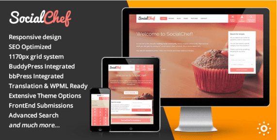 SocialChef является красивой, чистой и быстро реагирующей темой WordPress, которая идет с расширенным поиском и представлениями фронтэнда так же как функциями, предоставляемыми сообществом, такими как каналы действия и профили участников. Хотите обладать поварами и рецептами? Вы получили это! Эта тема определенно поможет Вам быстро создать устойчивое социальное сообщество и полезных кулинарных рецептов.